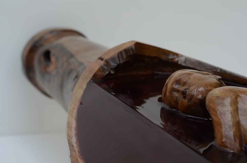 bottle aging gallery back next Bottle aging 201898x25x15 cmlegno di noce, resine, pigmenti Sezione di bottiglia magnum da 12 litri. Il riposo in bottiglia è una prassi dei grandi vini rossi, che maturano, smussano le asperità, si fanno suadenti.