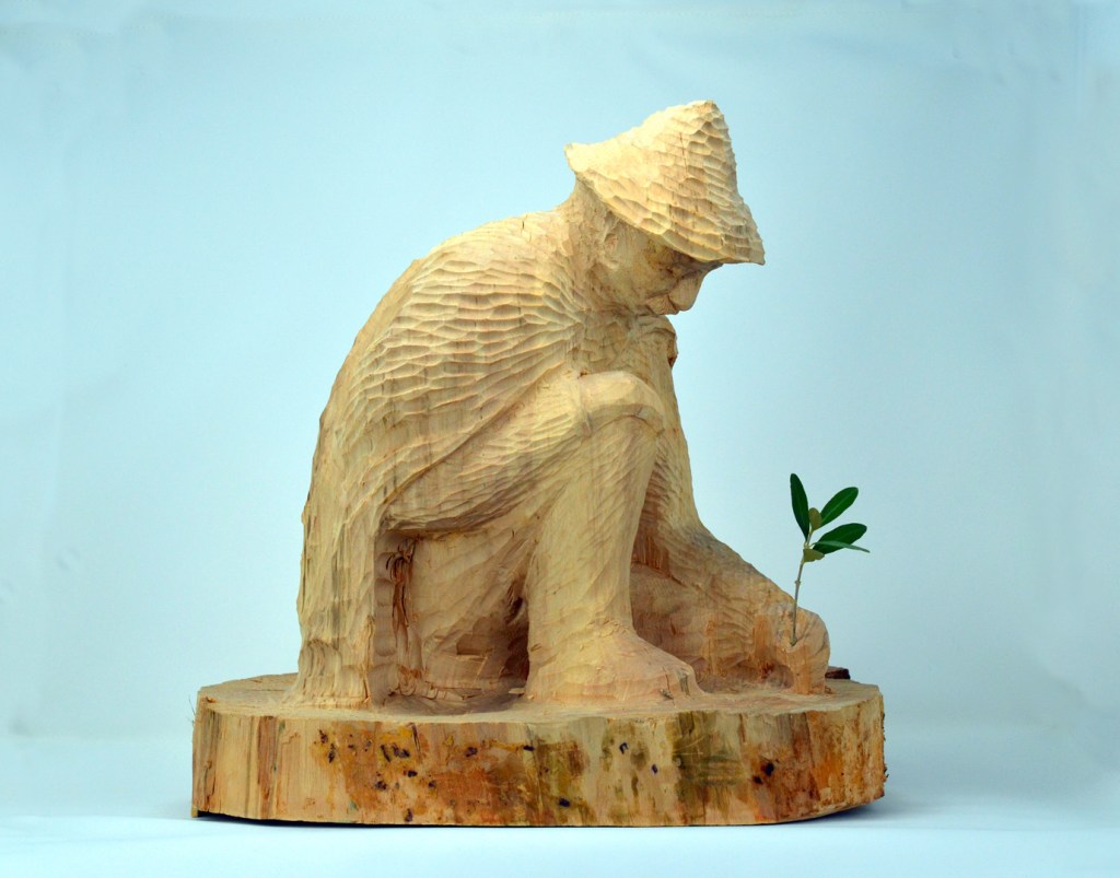 Sculture Sculture in legno, resina, materiali della vinificazione, autoportanti o murali, personalizzate.