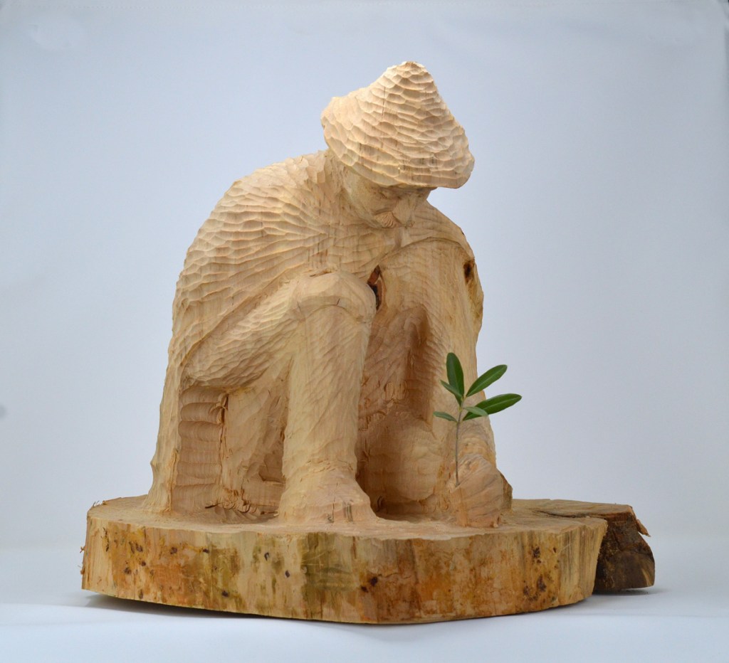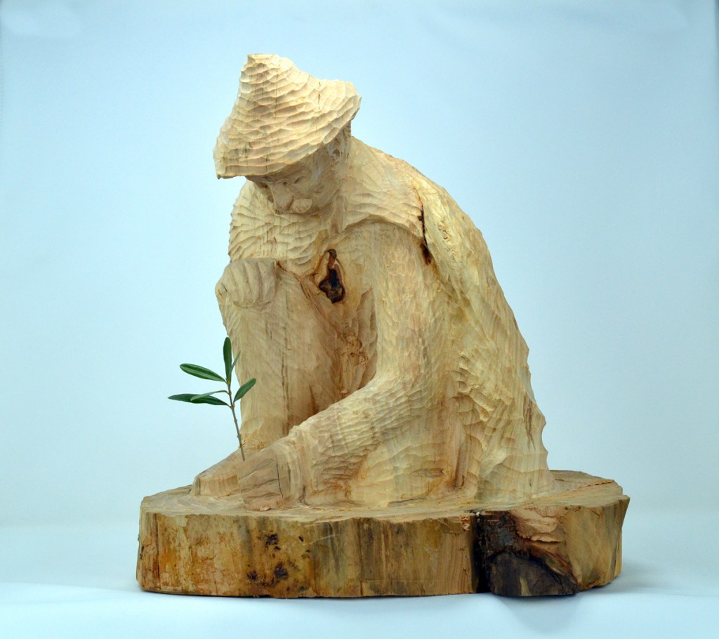 Ho realizzato questa scultura con grande entusiasmo dopo la lettura del meraviglioso racconto di Jean Giono, “L’uomo che piantava gli alberi” e dopo aver ammirato la sua trasposizione cinematografica d’animazione di Frédérick Back (clicca qui per guardarlo su youtube)